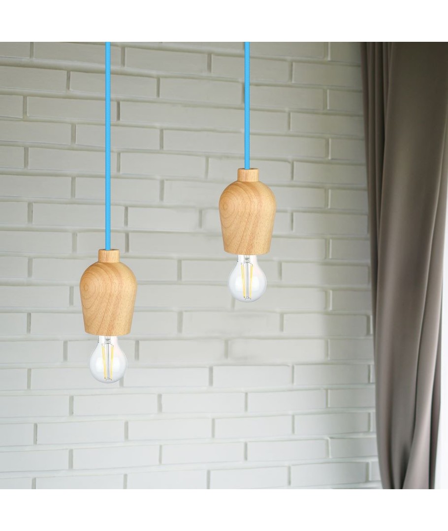 E27 Träpandel Lampa med blå ledning kombinerar naturliga material med modern design.