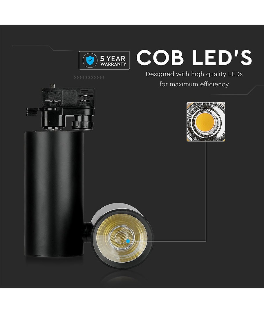 Som en del av V-Tac Pro serien, kommer denna skenspot med en 5 års fabriksgaranti. Genom att använda LED av högsta kvalitet, säkerställs en lång och säker drift på upp till 30.000 timmar. Produkten har dessutom minimalt ljusstyrkefall och professionell kylningskapacitet, vilket förlänger livslängden avsevärt.