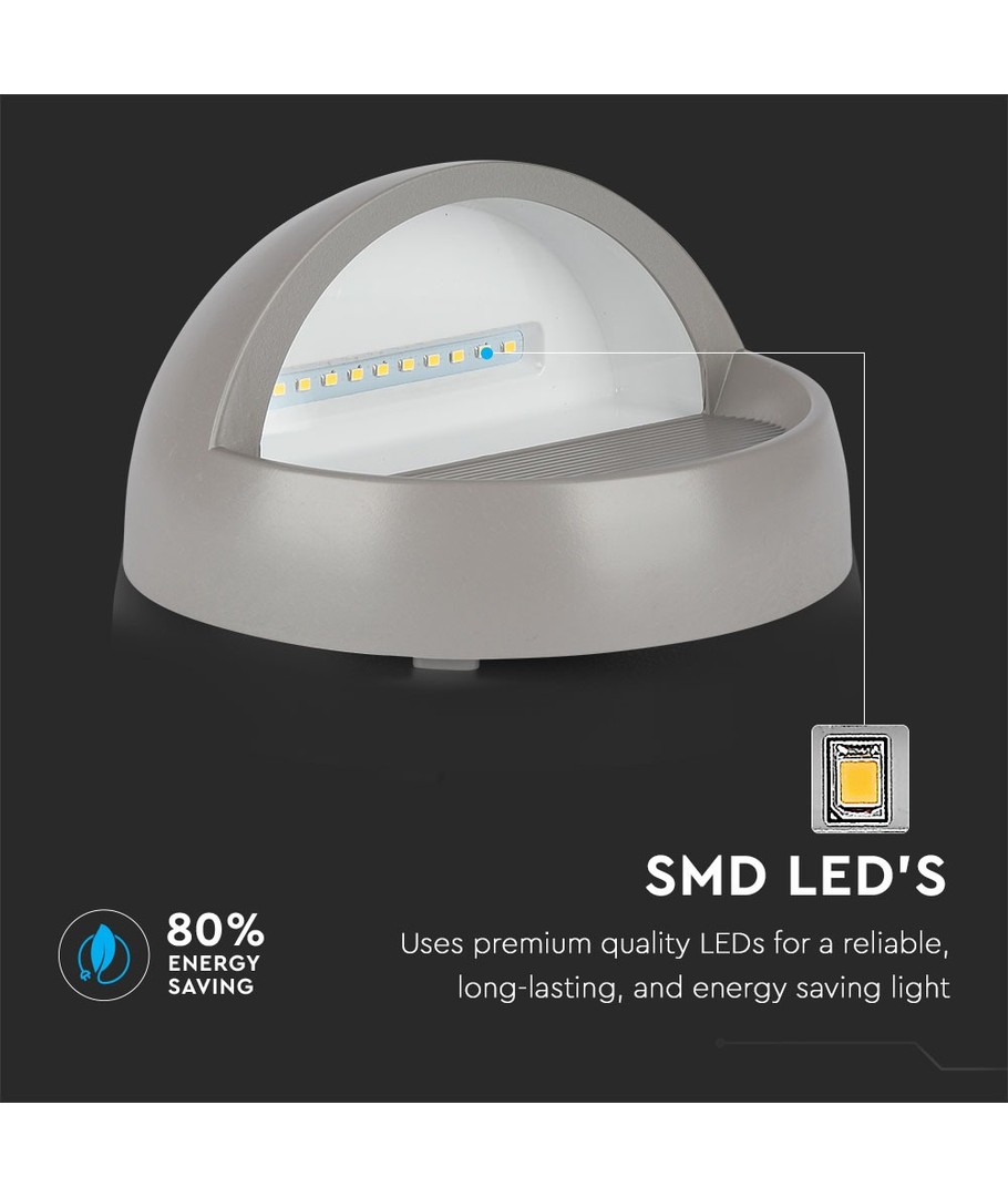 Belysningen kommer i ett diskret grått hus med en rund design, vilket gör att den smälter in vackert i de flesta miljöer.