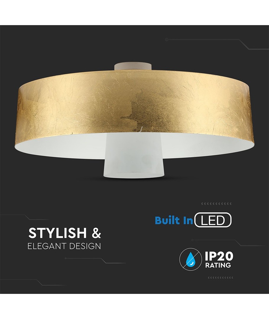 Med en stilren dimension på 340 mm och en guld finish, adderar denna pendellampa ett elegant intryck i vilket rum som helst. Vänligen notera att lampan har en skyddsklassning på IP20, vilket innebär att den inte är vattentät.