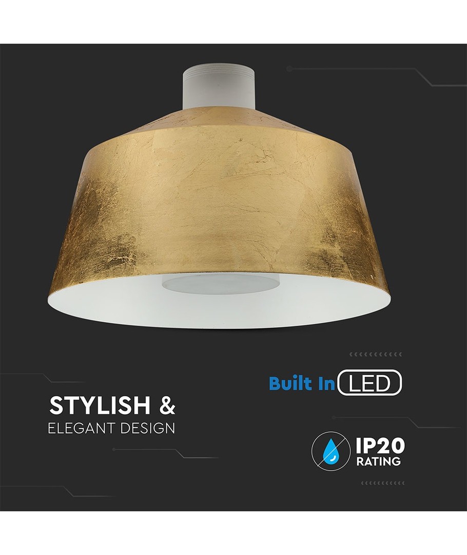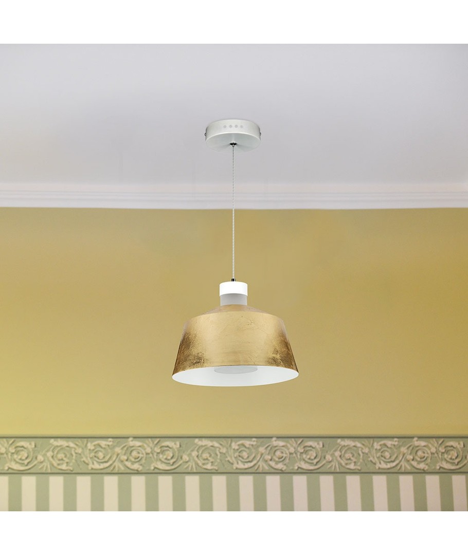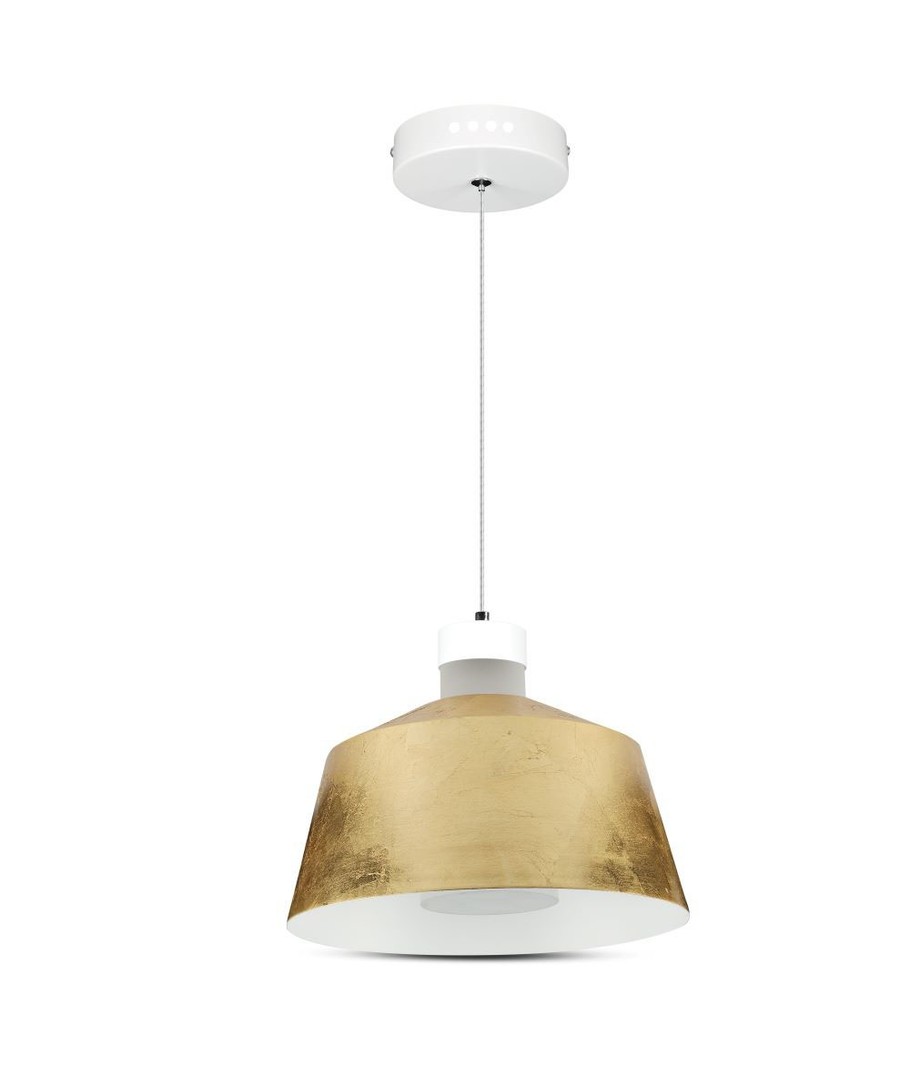 Förvandla din hemmiljö med denna eleganta och stilrena 7W LED Pendellampa med gylldig lampskärm. Den är designad för att smälta in i varje rum och sprida ett vackert, jämnt ljus.