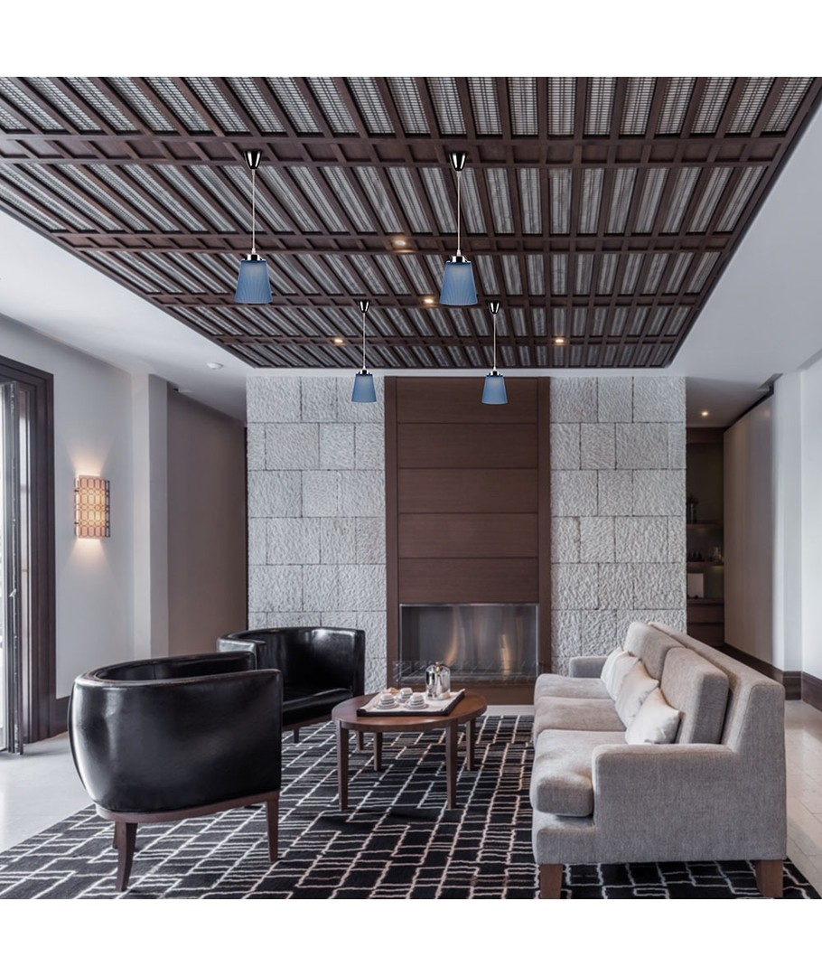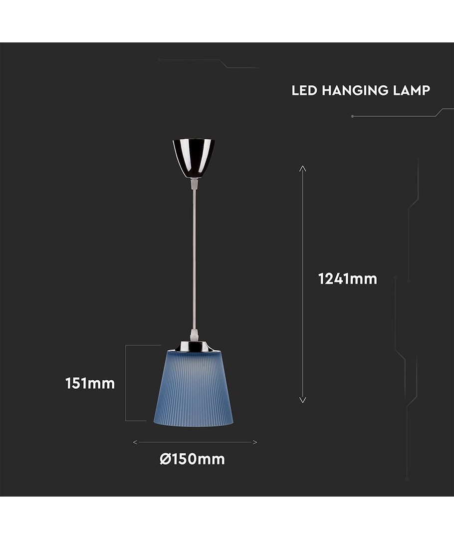 Denna eleganta taklampa kommer med en kombination av stil och funktionalitet, idealisk för att lysa upp alla rum i ditt hem eller kontor. Med dess moderna design och blå skärm bidrar den till en fräsch och estetiskt tilltalande atmosfär.