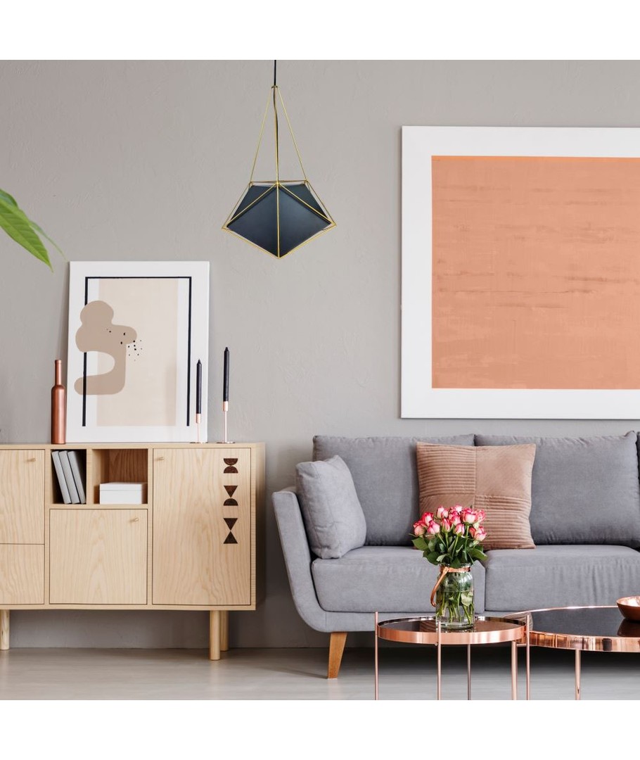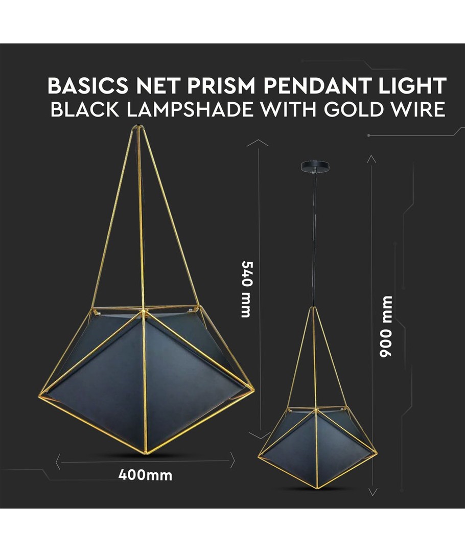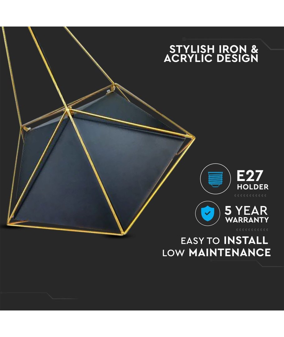 E27 pendel i metall - Svart och guld, modern prisme design, utan ljuskälla samsung Expandera