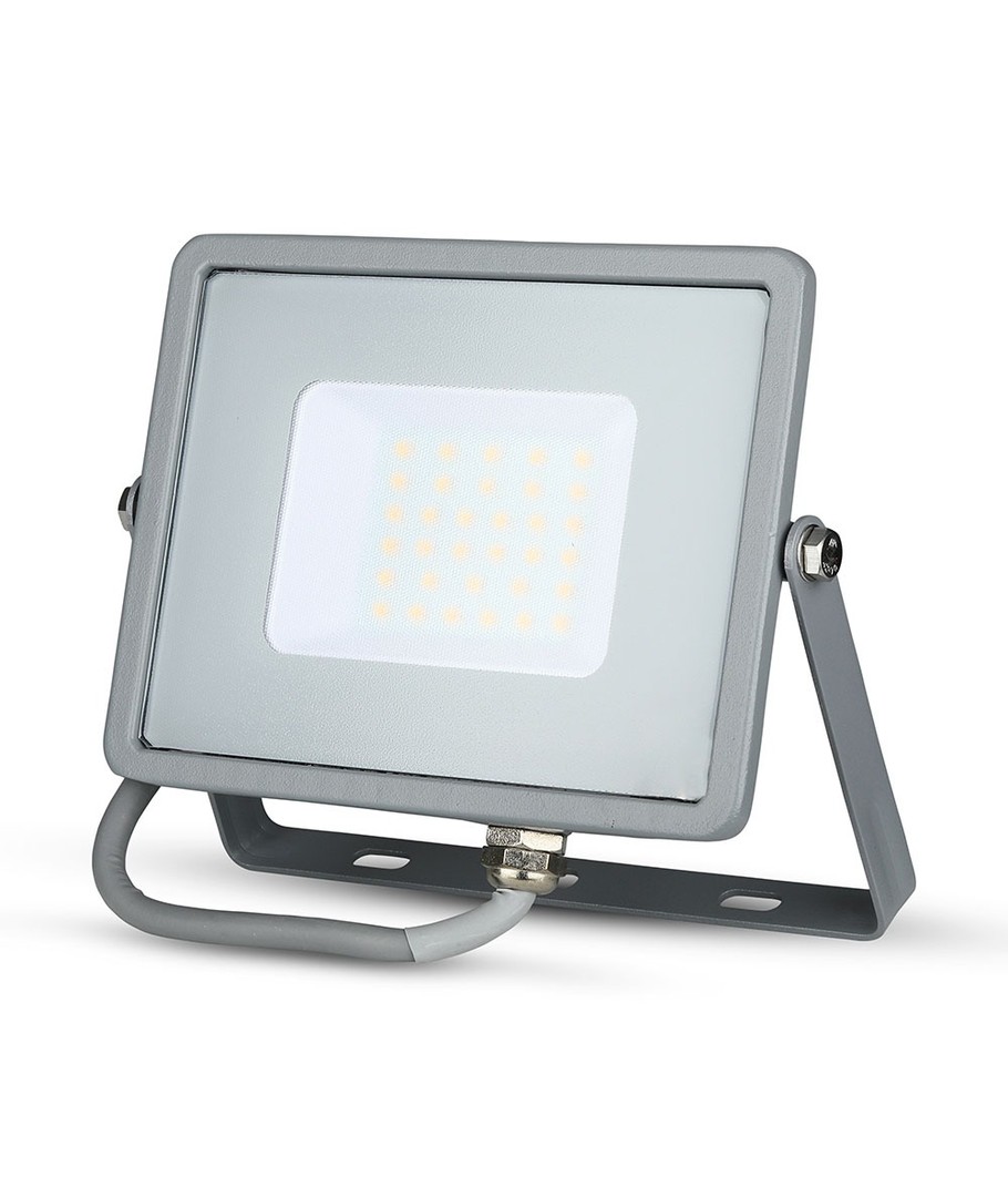 Med sitt gråa hölje och IP65-klassning, är denna strålkastare idealisk för utomhusbruk, då den utan problem klarar av både vattenstänk och regn. Den integrerade ljuskällan bidrar ytterligare till enkel installation och underhåll.