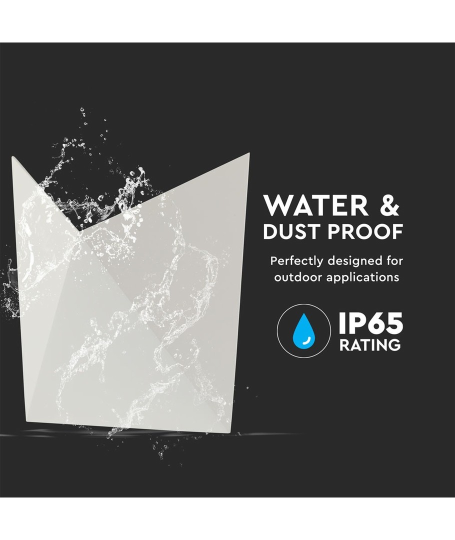 Med en klassificering av IP65 är denna vägglampa perfekt för utomhusbruk, eftersom den tål vattenstänk och regn. Det vita höljet ger ett elegant utseende som smälter in i olika miljöer.