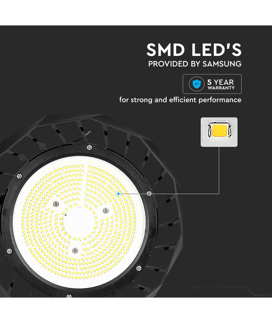 Med Samsung LED-chip och en Meanwell Driver säkerställs långvarig och säker drift. Produkten innehåller även en 5-års fabriksgaranti, vilket betonar tillförlitligheten och kvaliteten hos komponenterna.