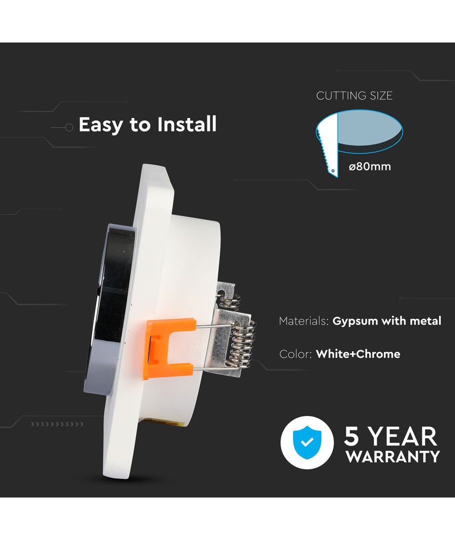 GU10 infälld spot i gips - Vit/krom, Hål: Ø8,0 cm, Mått: Ø10 cm, utan ljuskälla V-TAC Expandera