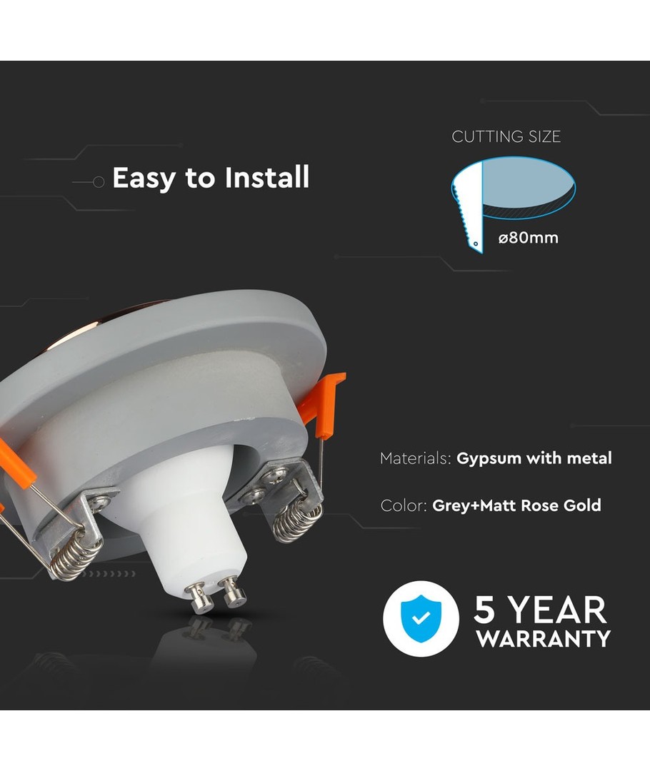 GU10 Grå Betong (inbyggd) med Matt Roséguld Botten-Rund V-TAC Expandera