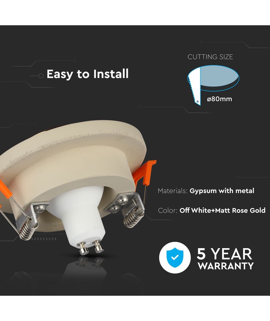 GU10 Gips Metall - Offwhite med Matt Roséguld Botten-Rund V-TAC Expandera