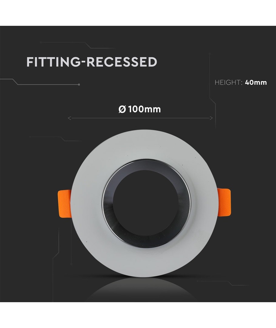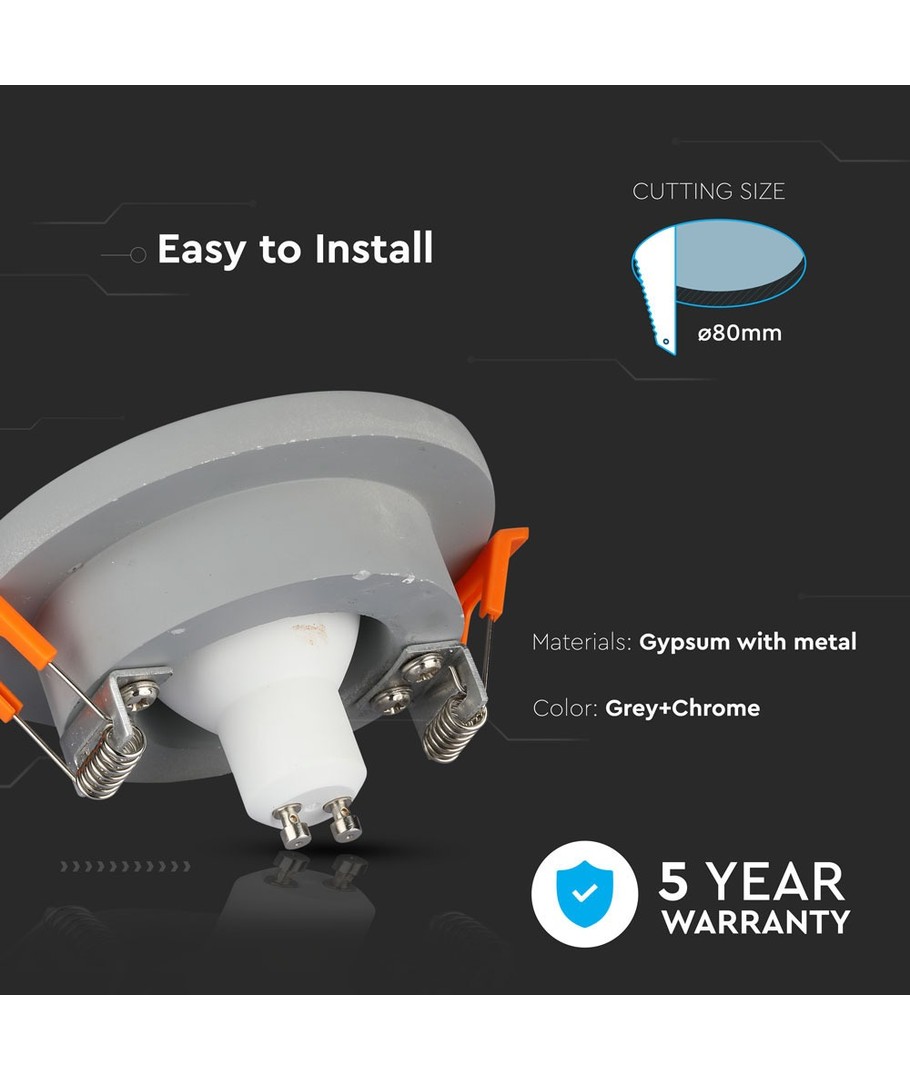 GU10 infälld spot i gips - Rund, grå betong med krom, Ø80 mm hål, IP20 inomhus V-TAC Expandera
