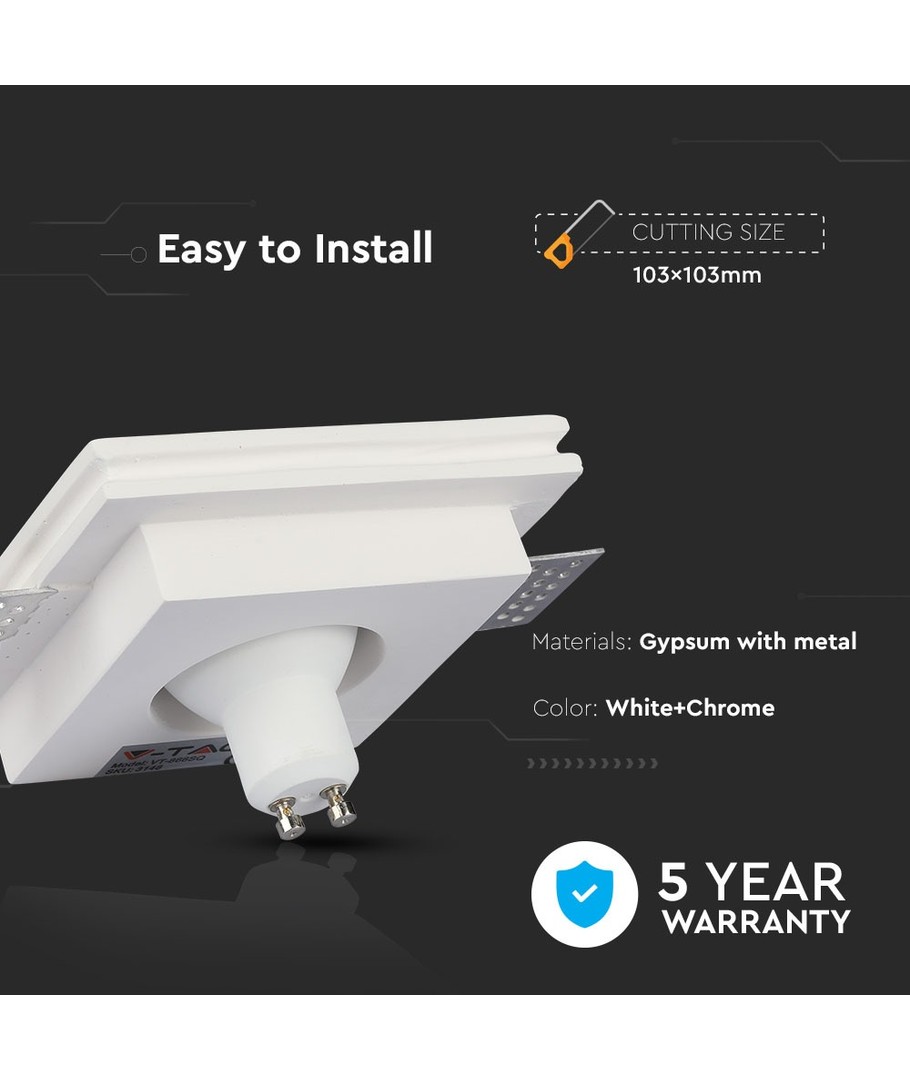 GU10 infälld spot i gips, kvadratisk - Vit + krom, 100x100mm, IP20, 5 års garanti V-TAC Expandera