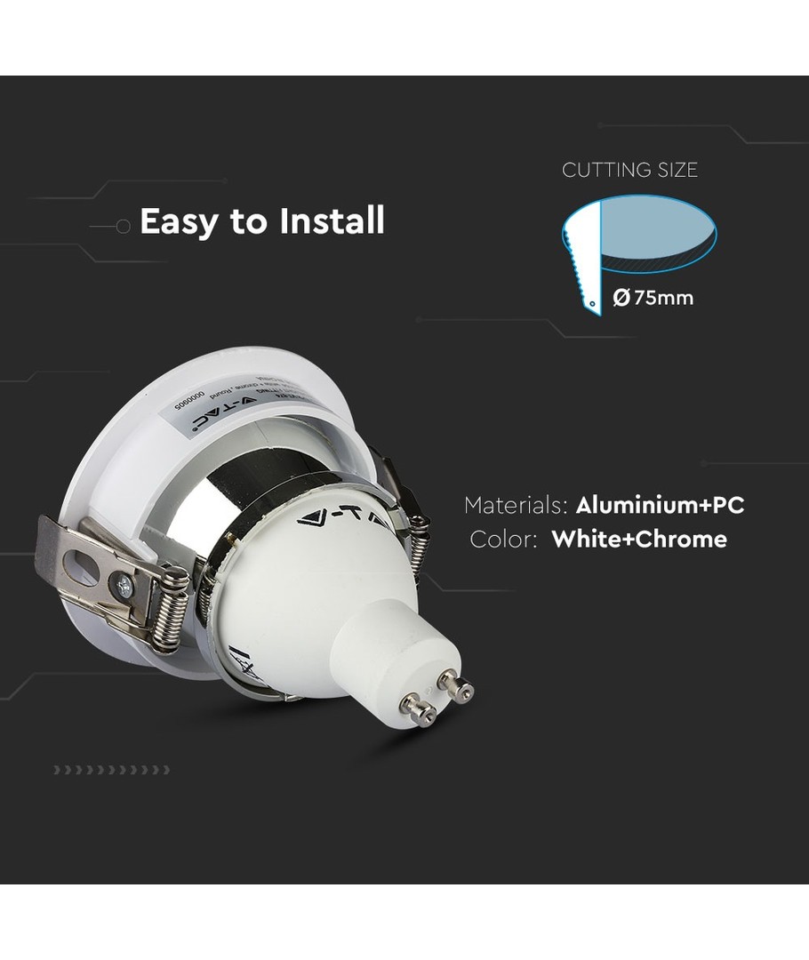 GU10 infälld spot - Rund, vit/krom, IP20, Hål: Ø7,5 cm, Mått: Ø8 cm V-TAC Expandera