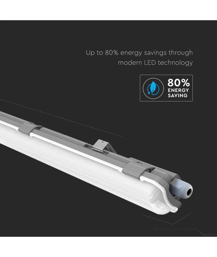 Möt vår 1x18W vattentäta lampa som erbjuder en perfekt lösning för både inomhus- och utomhusmiljöer. Med sina 120 cm är denna lampa ideal för belysning av större ytor och med en IP65-klassificering, är den redo att motstå både vattenstänk och regn.