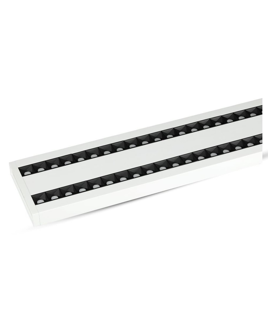 Lampan har en smal och modern design med dimensionerna 1190 x 30 x 160 mm. Den är inte vattentät (IP20) och passar därför bäst för inomhusbruk i torra miljöer.