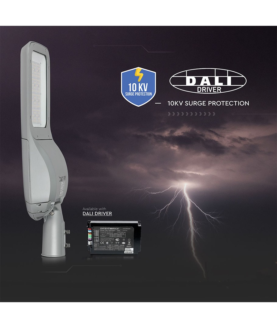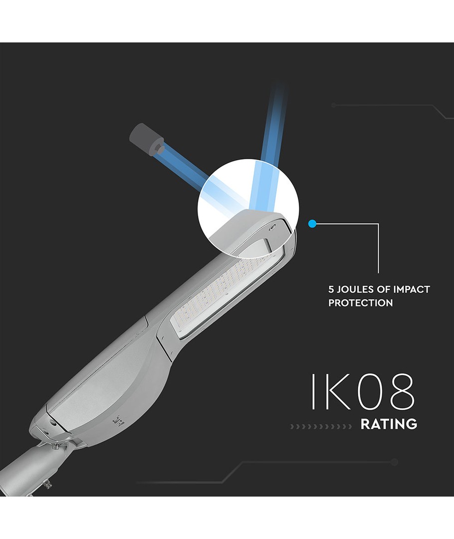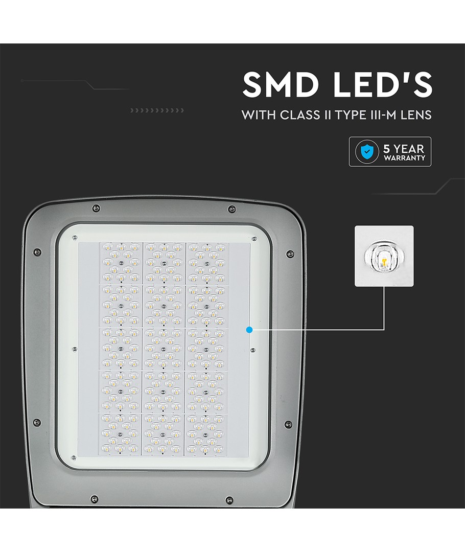 Denna 160W LED gatlykta kombinerar kraft med teknologi för att ge en pålitlig och effektiv belysningslösning för utomhusmiljöer. Med en ljusstyrka på 20,800 lumen och en bred spridning på 150/80 grader, säkerställer den en jämn fördelning av ljuset över hela området.