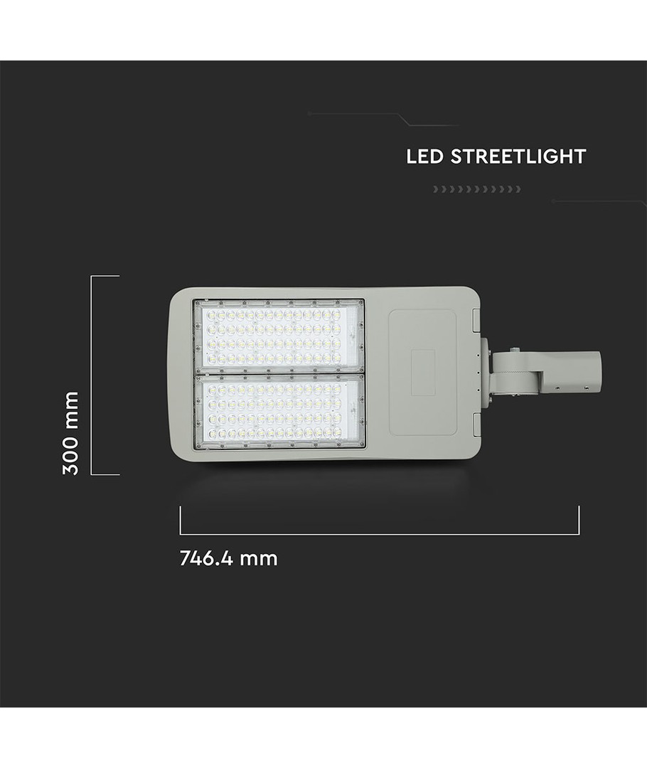 Den här LED-gatlyktan erbjuder en effekt på 150W och förser dina utomhusmiljöer med en ljusstyrka på 21000 lm. Den breda spridningen på 153/70 grader säkerställer en jämn fördelning av ljuset, vilket gör den idealisk för olika utomhusområden.