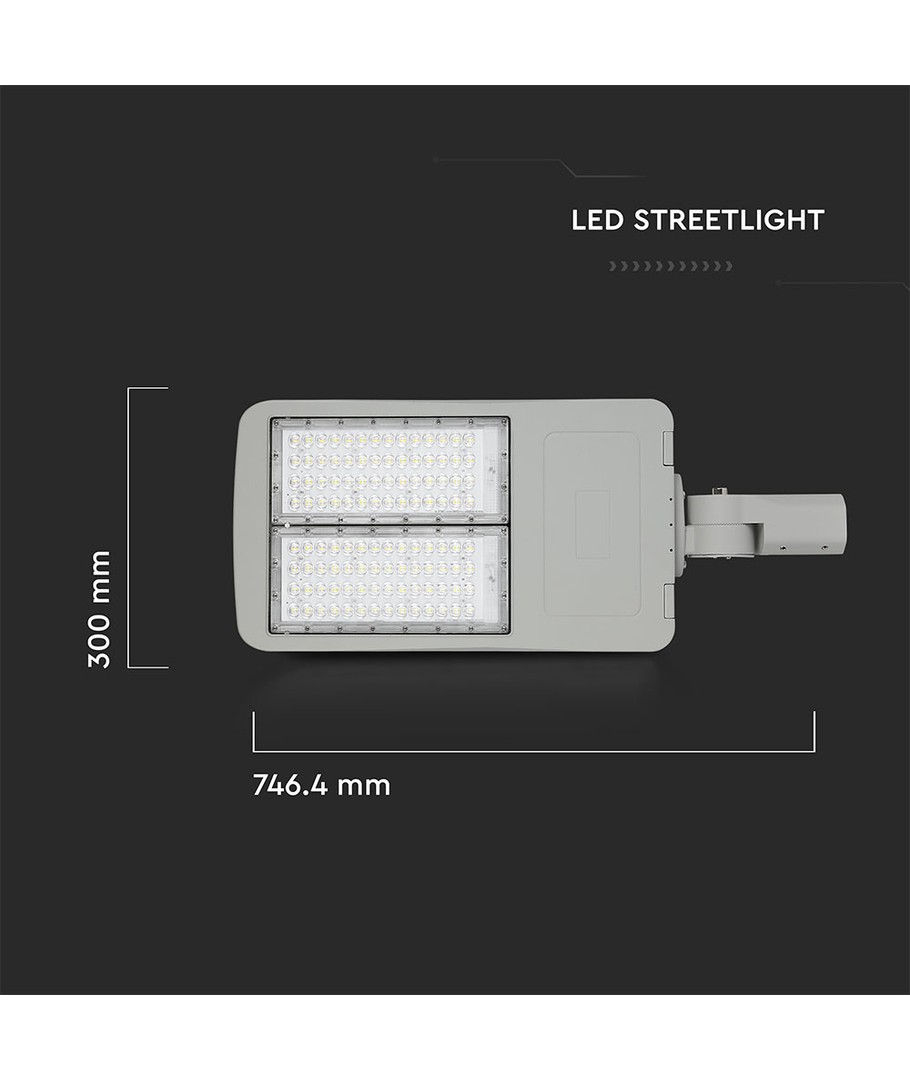 Denna LED-gatlykta, utrustad med Samsung-chip, är det perfekta valet för dig som söker effektiv och hållbar belysning. Med en effekt på 200W, ger den en imponerande ljusstyrka på 28 000 lm och säkerställer en jämn ljusfördelning tack vare sin breda spridning på 153/70 grader.