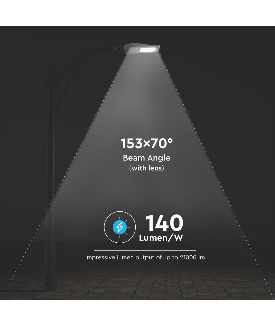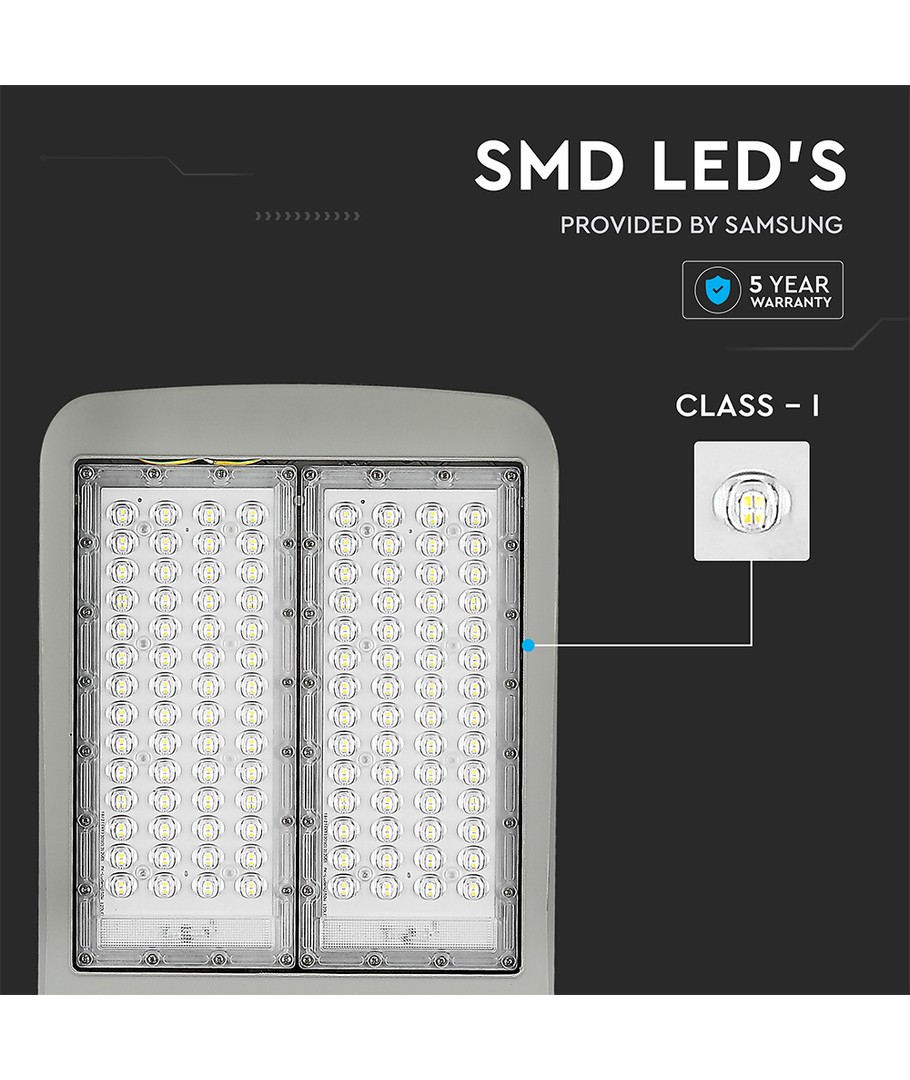 Denna kraftfulla och energieffektiva LED-gatulampa erbjuder en imponerande kombination av ljusstyrka och hållbarhet. Utrustad med Samsung LED-chip och en Inventronics driver säkerställs en lång livslängd och jämn prestanda, vilket gör den idealisk för utomhusmiljöer.
