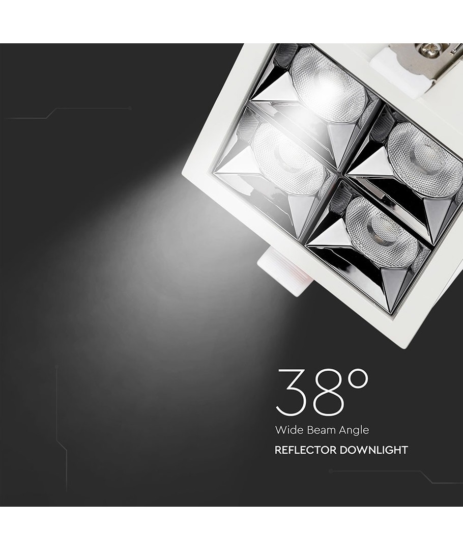 Upptäck en 16W downlight designad med fokus på prestanda och hållbarhet. Med en ljusstyrka på 1280 lumen och en fokuserad spridningsvinkel på 38 grader garanteras ett kontrollerat ljusflöde. Den lämpar sig utmärkt för miljöer där ett koncentrerat ljus är önskvärt.