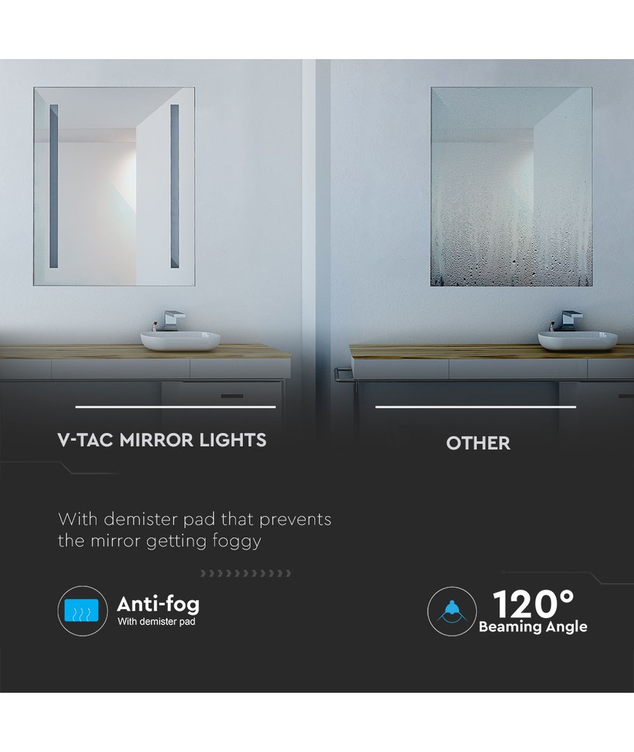 Den stilrena krom-finishen passar perfekt i moderna badrum. Spegellampans dimensioner är 500 x 35 x 390 mm, vilket gör den kompakt och ändå effektiv i att sprida ljus jämnt i rummet.