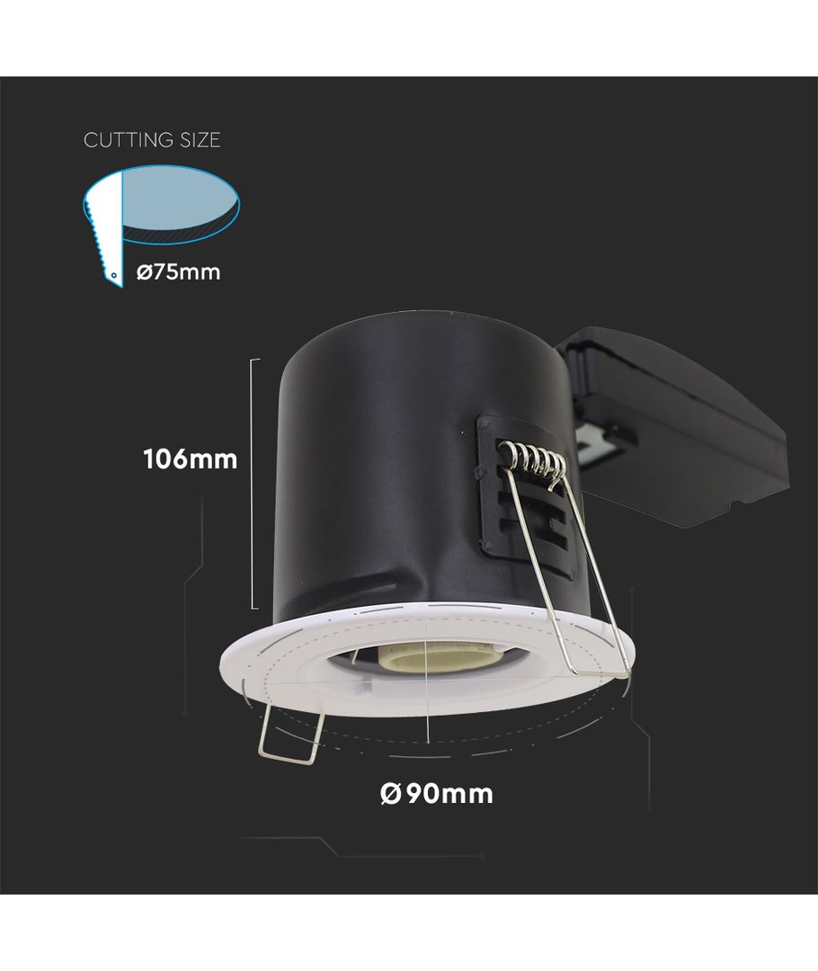 Denna downlight är designad för enkel installation, med en dimension på 106 x 90 mm och en hålstorlek på 75 mm vilket gör den idealisk för de flesta tak. Med sin vita finish smälter den snyggt in i de flesta miljöer, samtidigt som den ger ett modernt och stilrent intryck.