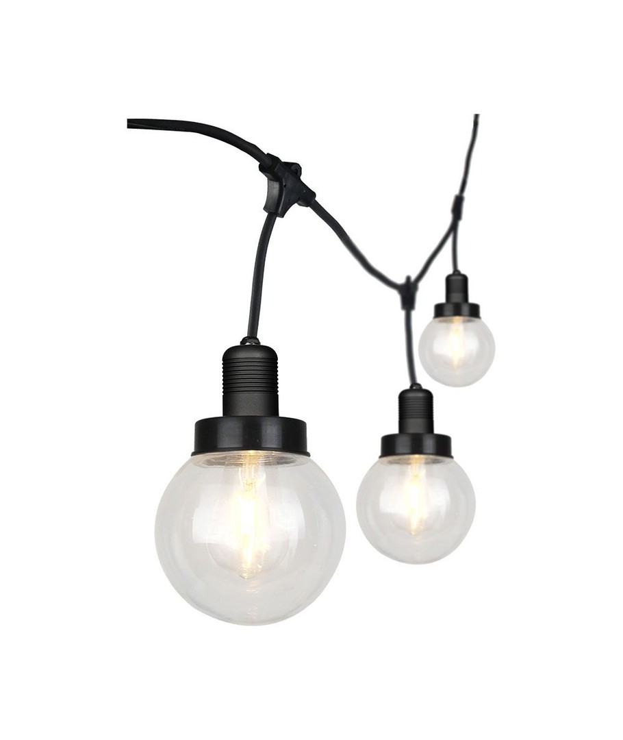 Den 3m E27 ljusslinga med 6 kupoler är en stilfull och funktionell lösning för utomhusbelysning, perfekt för att skapa en mysig atmosfär i trädgården eller på terrassen.