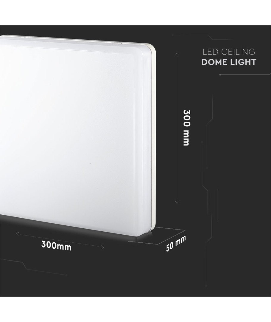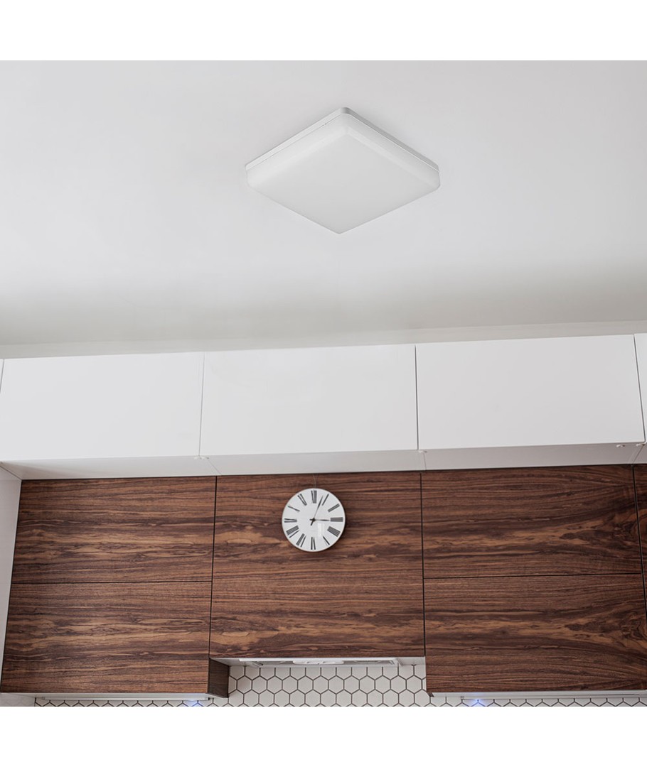 Med sina kompakta dimensioner på 300 x 50 x 300 mm passar denna lampa perfekt in i olika utrymmen och inredningsstilar. Dessutom är den säker att använda i fuktiga miljöer tack vare sin IP44-klassificering, vilket gör den tålig mot fuktig luft och vattenstänk.