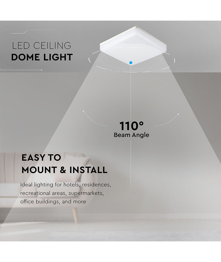 Denna LED-taklampa levererar en ljusstyrka på 2500 lumen och har en bred spridningsvinkel på 110 grader, vilket säkerställer en jämn och effektiv ljusfördelning i hela rummet.