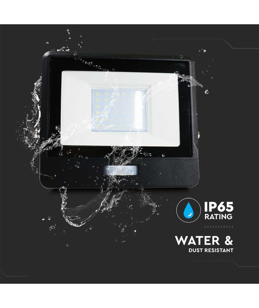 Med en IP65-klassning är denna strålkastare perfekt för utomhusbruk. Den tål både vattenstänk och regn, vilket gör den idealisk för alla väderförhållanden.