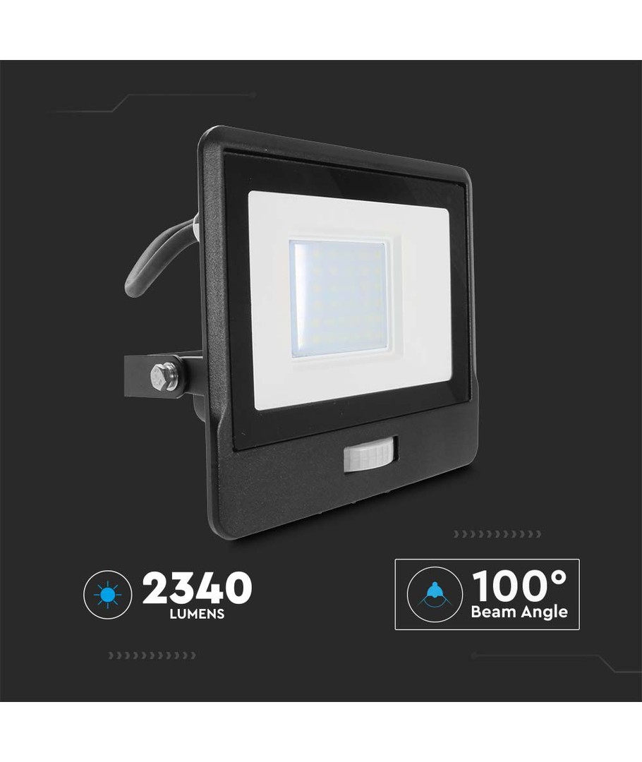 För en effekt på 30W erbjuder denna strålkastare en imponerande ljusstyrka på 2340 lm och en bred spridning på 100 grader. Det säkerställer en jämn och optimal fördelning av ljuset för dina utomhusbehov.