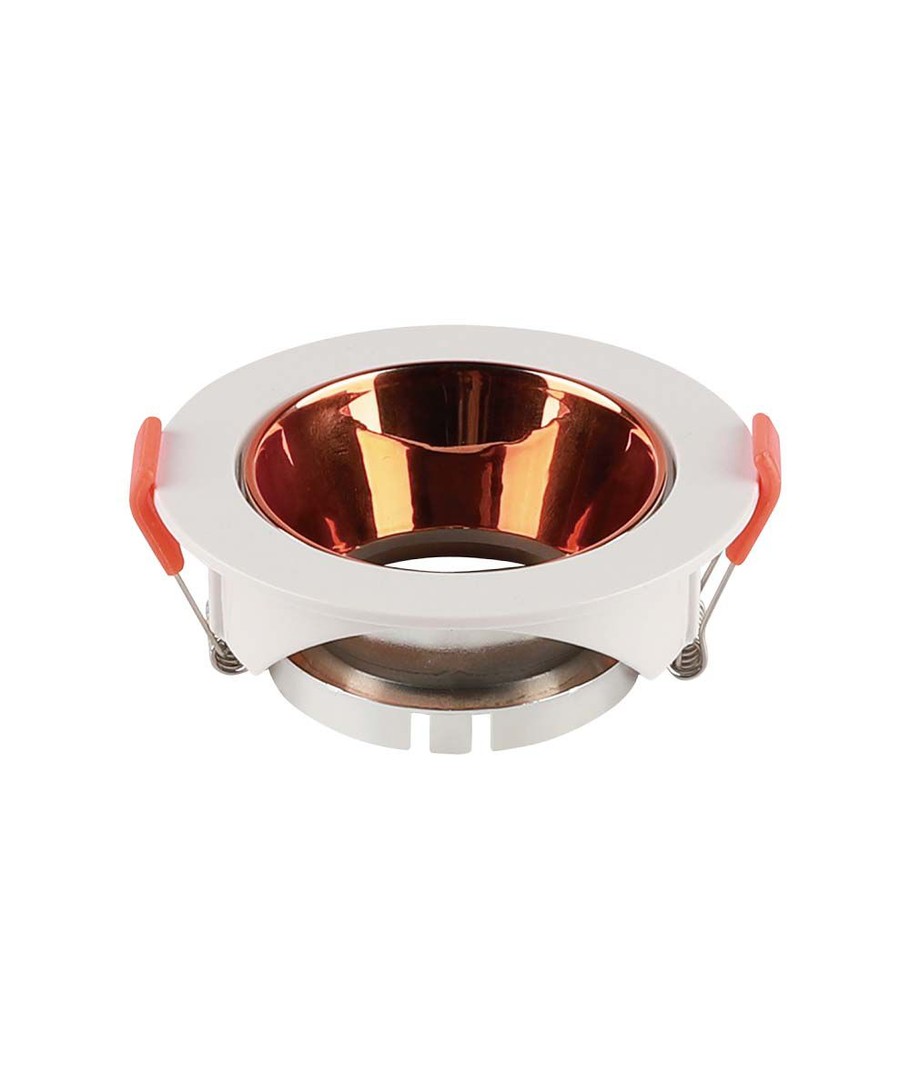 Lampan har en stilren rund vit ram som smälter in i de flesta inredningar. Den unika roséguld reflektorn ger ett varmt och inbjudande sken, vilket skapar en behaglig atmosfär i rummet.
