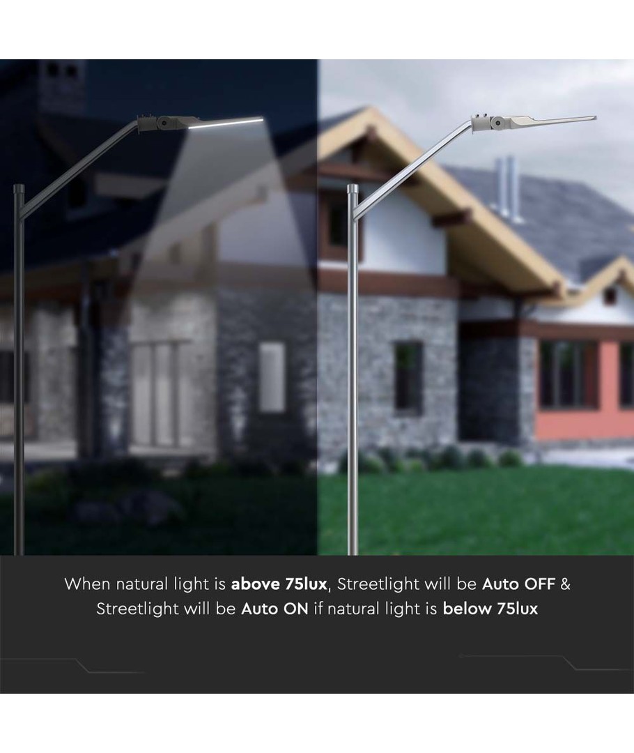 Gör din utemiljö säkrare och mer upplyst med denna kraftfulla LED-gatlykta. Ljusarmaturen har en effekt på 150W som garanterar stark och varaktig belysning med en ljusstyrka på 16500 lumen.