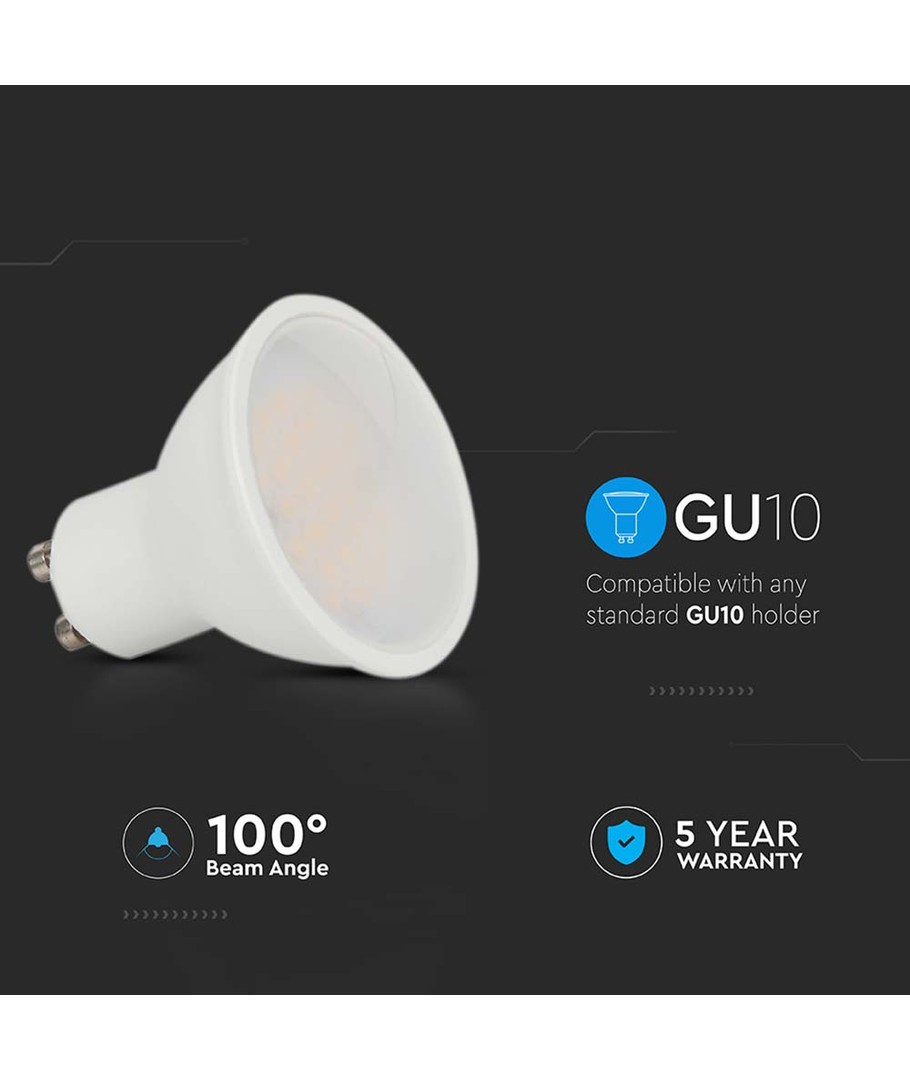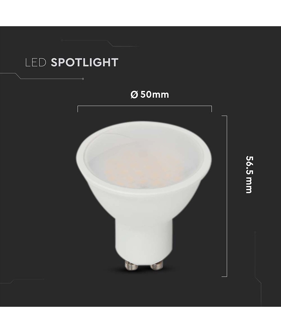 Detta spotljus är en effektiv och hållbar belysningslösning med en effekt på 4,5W. Det är utrustat med en GU10 sockel, vilket gör den kompatibel med många olika armaturer. Den erbjuder en ljusstyrka på 400 lm, och tack vare sin breda spridningsvinkel på 110 grader, får du en jämn och omfattande ljusfördelning.