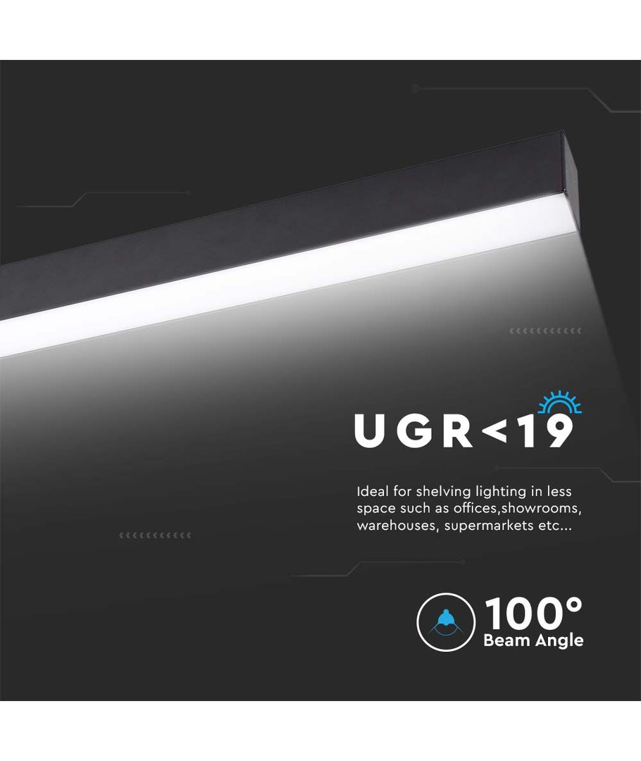 Detta linjära ytljus på 40W är idealiskt för dig som söker ett pålitligt och effektivt belysningsalternativ. Med en ljusstyrka på 3300 lumen och en bred spridning på 100 grader garanterar denna belysning en jämn ljusfördelning i hela rummet.