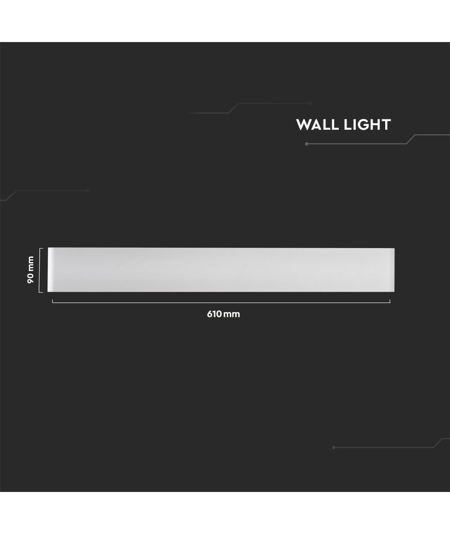 Med dimensionerna 610 x 35 x 90 mm smälter lampan sömlöst in i de flesta inredningar. Den är dessutom designad för att tåla olika väderförhållanden med sin IP44-klassning, vilket gör den lämplig för att stå emot fuktig luft och vattenstänk.