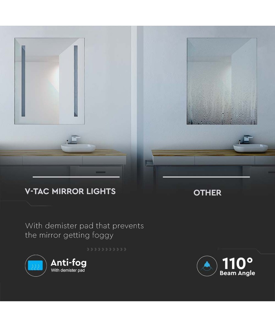 Med en ljusstyrka på 95 lm och en bred spridning på 110 grader, erbjuder detta spegelljus en jämn och effektiv ljusfördelning som är nog för att täcka de flesta behov. Den höga ljuskvaliteten med ett RA-värde på 80-85 säkerställer att färger visas naturligt och vackert, vilket är viktigt för exempelvis sminkapplikation eller skönhetsvård.