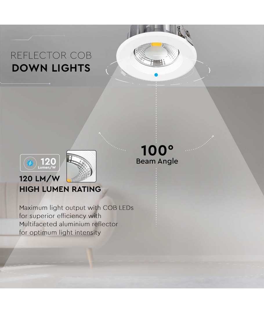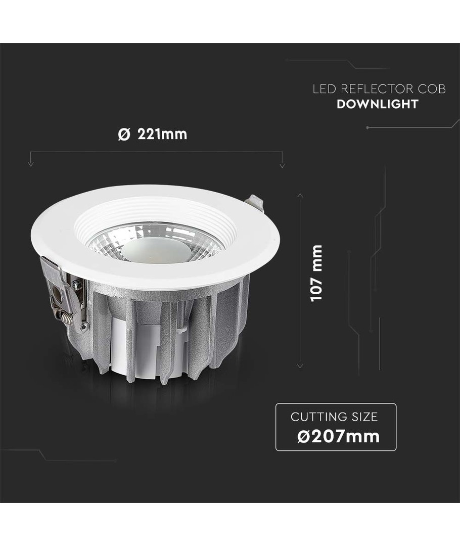 Denna högpresterande downlight är idealisk för dem som letar efter strategiskt och effektivt belysningsalternativ för hem eller arbetsplats. Med en effekt på 40W och en imponerande ljusstyrka på 4800 lm erbjuder denna LED-reflektor en bred ljusspridning på 100 grader. Detta säkerställer en jämn och omfattande ljusfördelning som uppfyller de flesta belysningsbehov.
