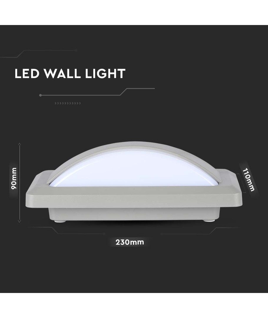 Med ett grått hus och dimensioner på 230 x 76 x 110 mm är denna LED-belysning både diskret och robust. Den är konstruerad för att klara av de flesta väderförhållanden tack vare sin IP65-klassning, vilket gör den idealisk för utomhusbruk där den utan problem kan stå emot vattenstänk och regn.