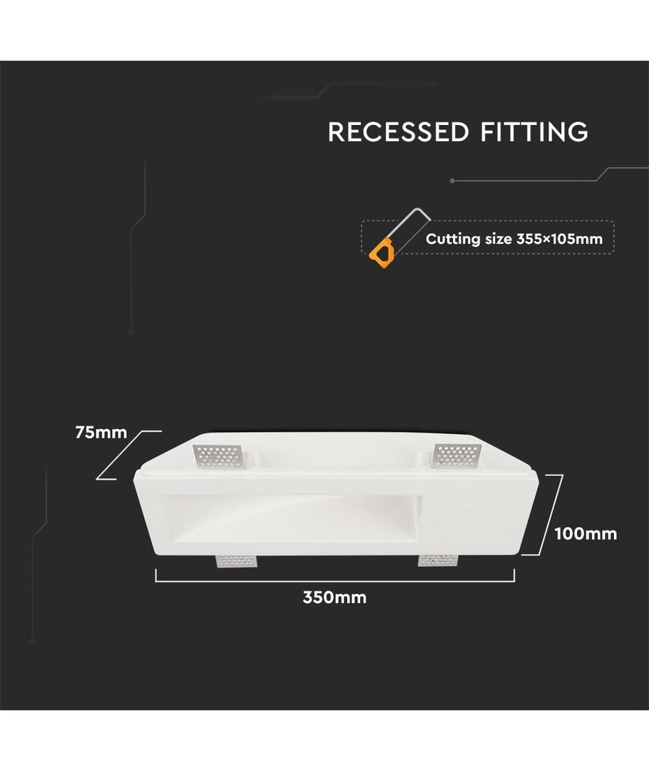 Denna nedåtriktade glödlampa är designad med modern estetik i åtanke och kommer i en tidlös vit färg som enkelt smälter in i alla inredningar. Med sina dimensionsmått på 350 x 75 x 100 mm och en rekommenderad hålstorlek på 355x105 mm, kan du enkelt anpassa installationen till önskat utrymme för optimal belysning.
