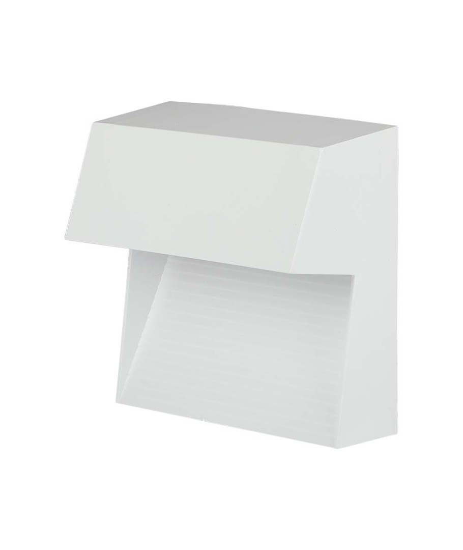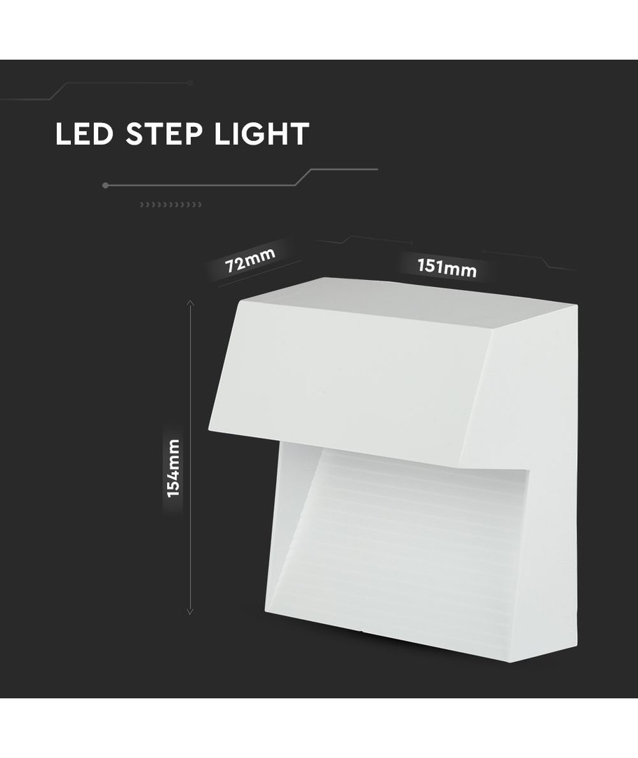 Belysningen har en stilrent vit hus som smälter in i de flesta miljöer. Med mått på 154 x 72 x 151 mm, är den kompakt nog att integreras med vilken trappa som helst utan att påverka estetiken negativt.