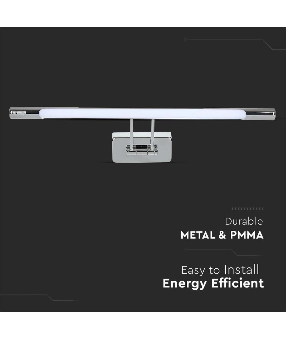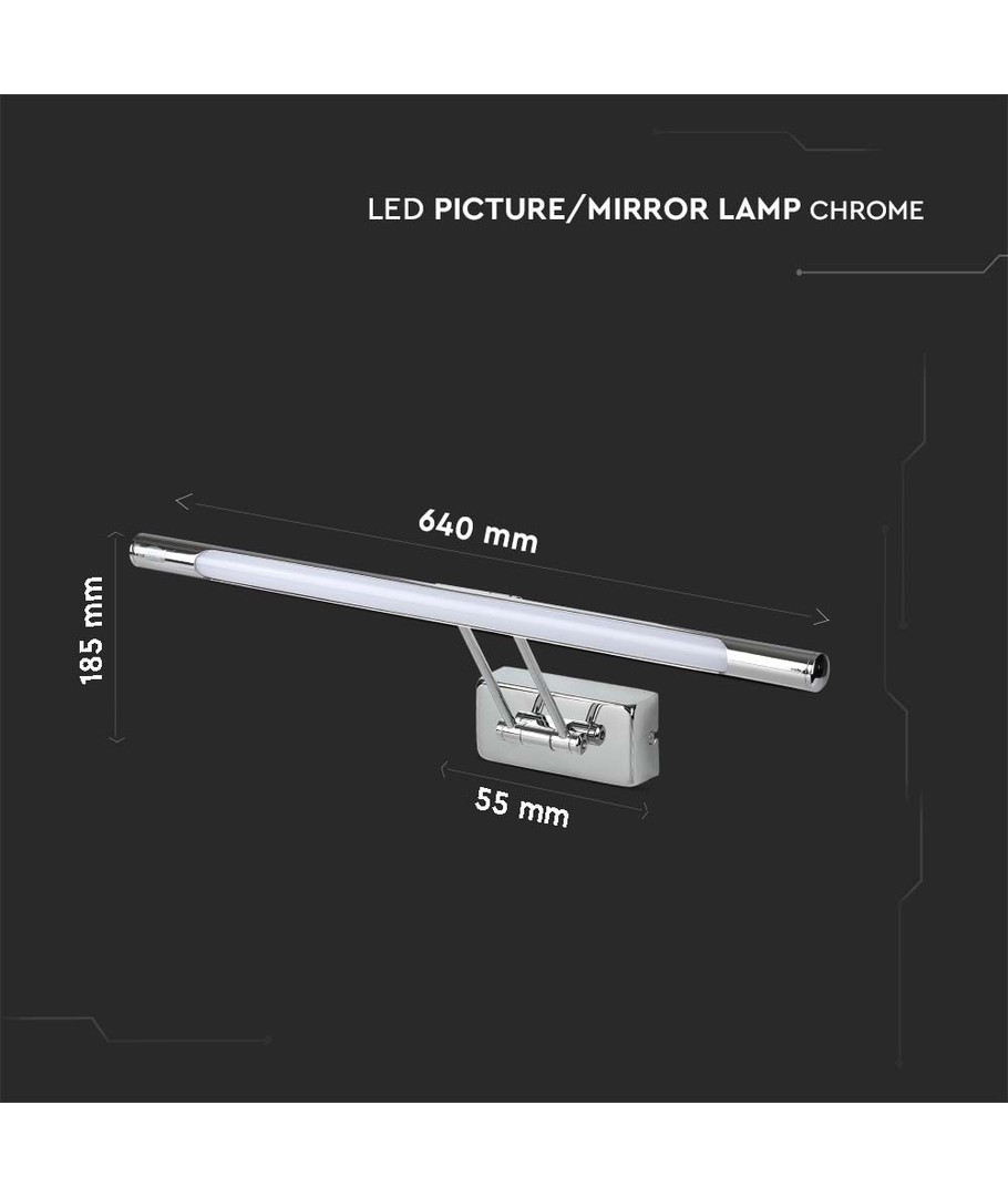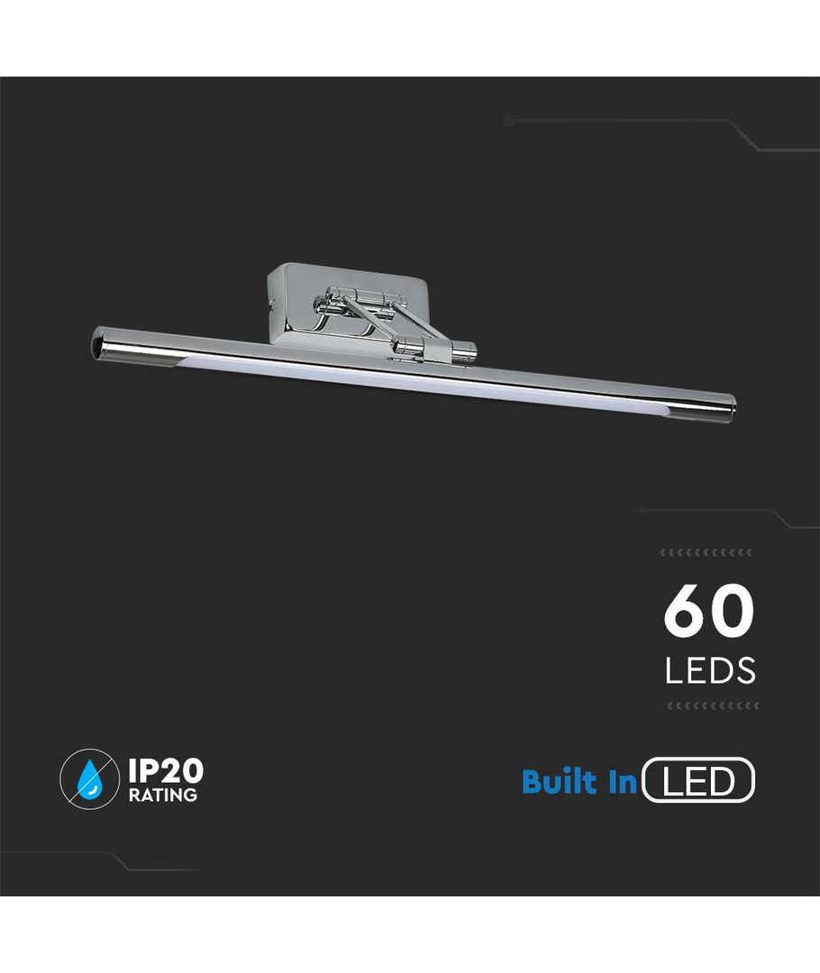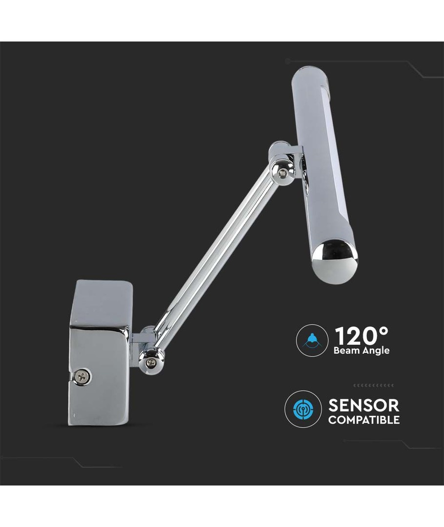 Denna eleganta lampa i krom är perfekt för att belysa dina tavlor eller speglar med stil och funktionalitet. Med en effekt på 13W och en ljusstyrka på 850 lm får du en effektiv och jämn ljusfördelning tack vare lampans breda spridning på 120 grader.