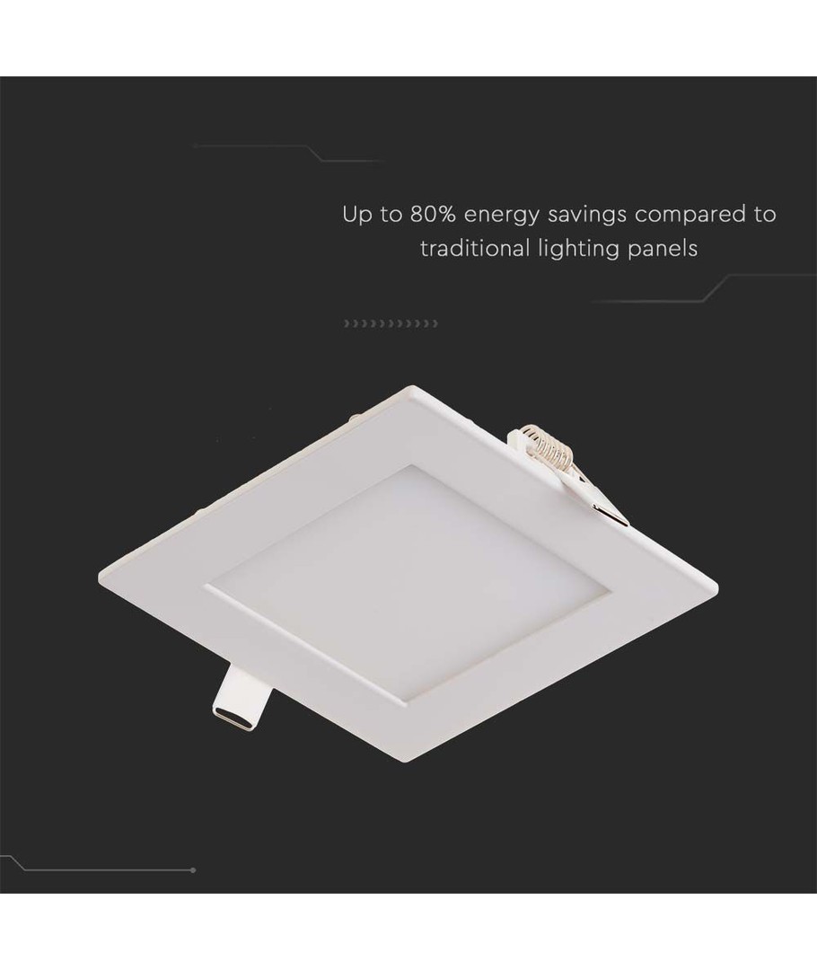 Denna fyrkantiga 6W LED Panel är utformad för att ge en jämn och effektiv belysning med sin ljusstyrka på 490 lm och en bred spridning på 120 grader. Detta säkerställer en jämn fördelning av ljuset i ditt valda utrymme.