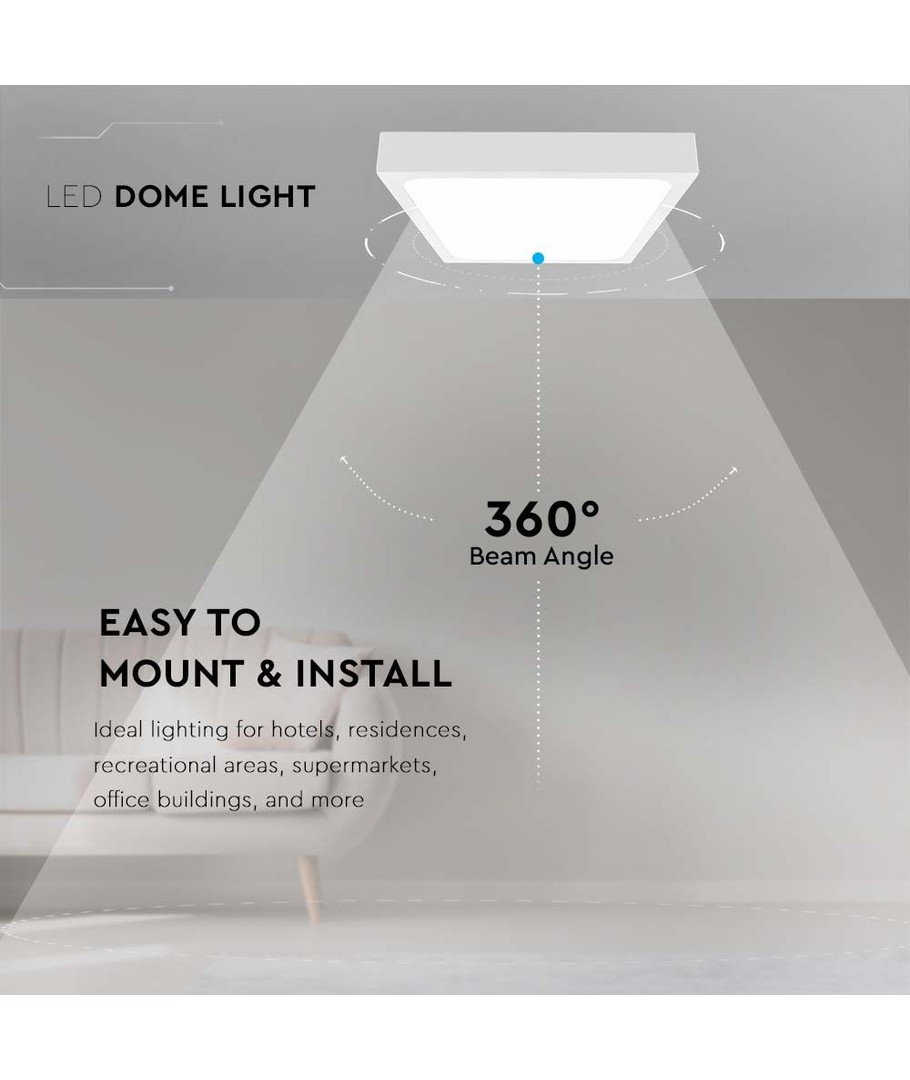 Denna fyrkantiga kupollampa är ett utmärkt val för dem som söker både funktion och estetisk attraktionskraft i sina belysningslösningar. Med sitt moderna utseende och praktiska egenskaper kan den enkelt användas i både hemmamiljö och kommersiella utrymmen, där en klar och jämn belysning eftersträvas.