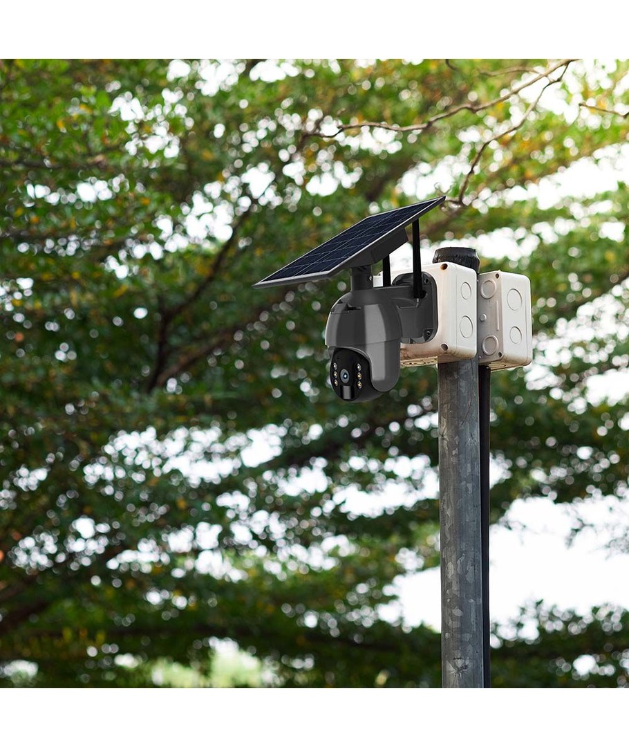 Upptäck den otroliga WiFi HD Smart Solar Energi PTZ Kamera Sensor i svart, som kombinerar avancerad teknik med hållbar energiförsörjning.