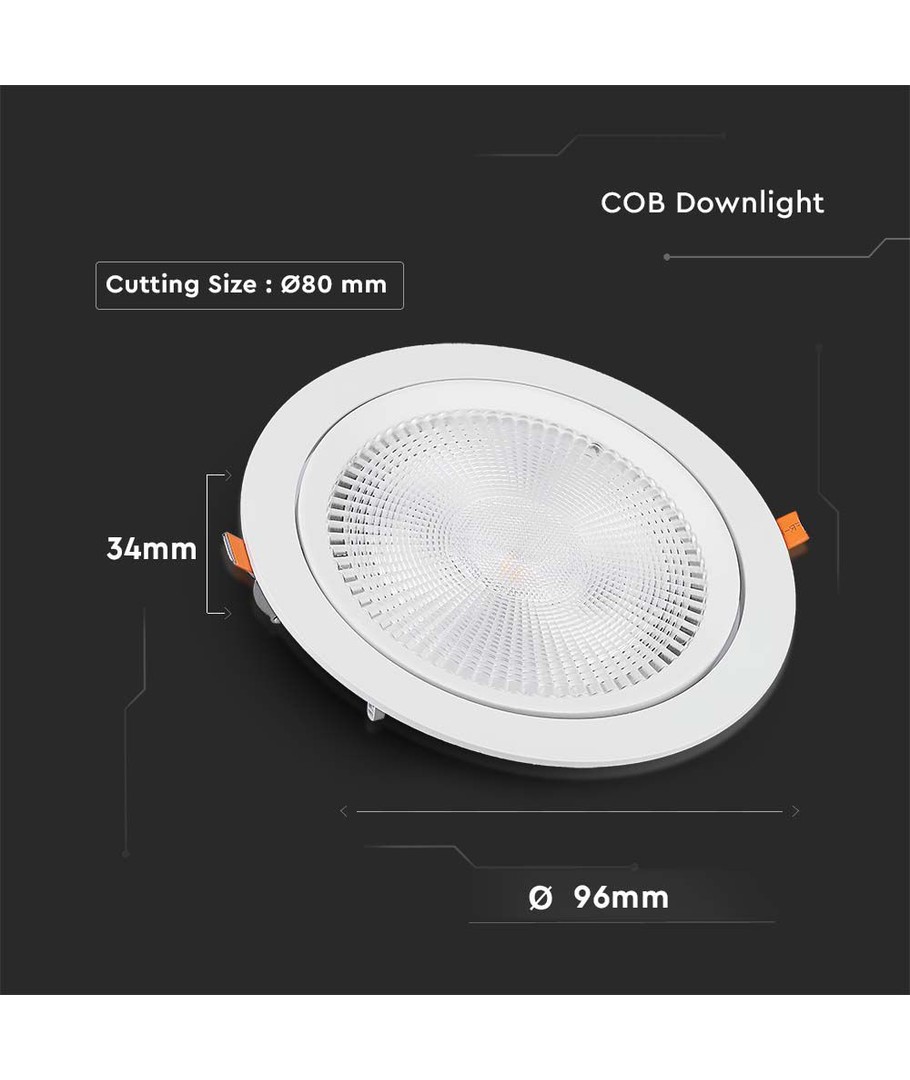 V-TAC LED Downlight är en utmärkt ljuskälla med 10W effekt och en ljusstyrka på 1060 lumen. Den är designad för att ge ett riktat ljus med en spridningsvinkel på 25 grader, vilket säkerställer en kontrollerad och effektiv belysning. Med ett RA-värde på 80-85, erbjuder den en hög ljuskvalitet som återger färger på ett naturligt och vackert sätt.