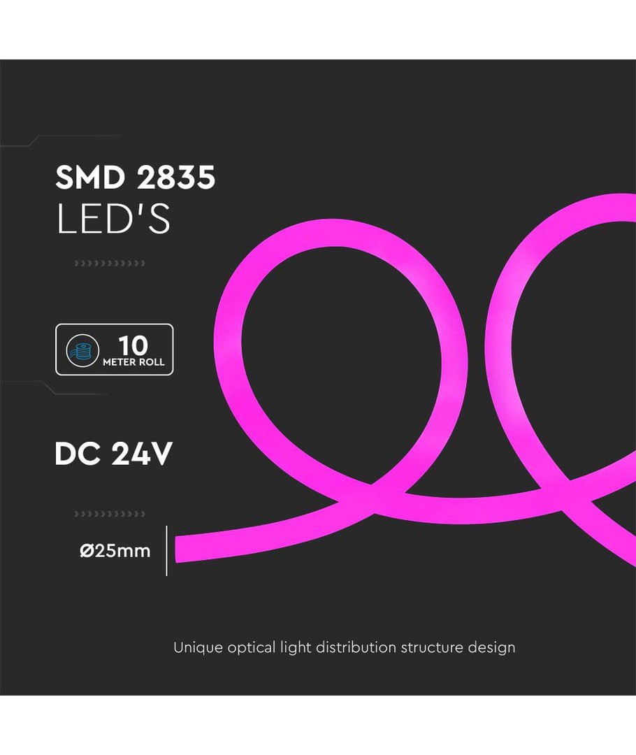 Med dess dimensioner på 25 mm, är neonslingan lätt att installera och passar i trånga utrymmen utan att kompromissa med ljusstyrkan eller effekten.