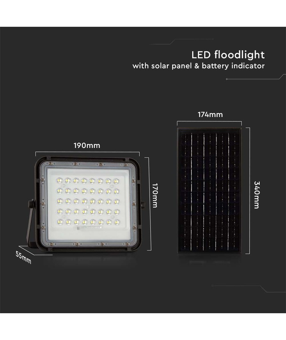 Denna solstrålkastare mäter 190 x 55 x 170 mm, vilket gör den både kompakt och lätt att installera utan att kompromissa med prestanda.