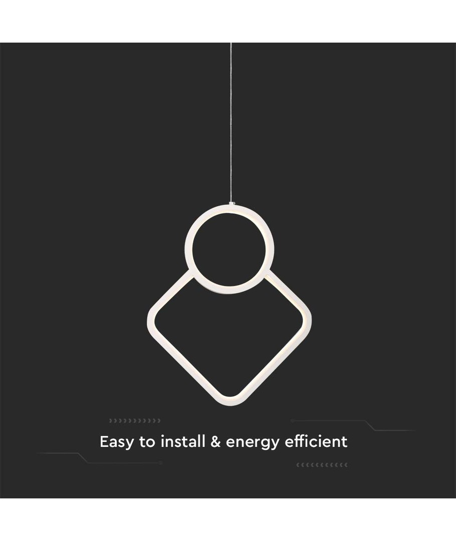 Denna stilrena LED metallhänglampa, designad för att passa i alla moderna bostadsutrymmen, erbjuder en kombination av funktion och estetik. Med sina skarpa linjer och den vita ytfinishen smälter den in i olika miljöer och ger ett sofistikerat intryck.