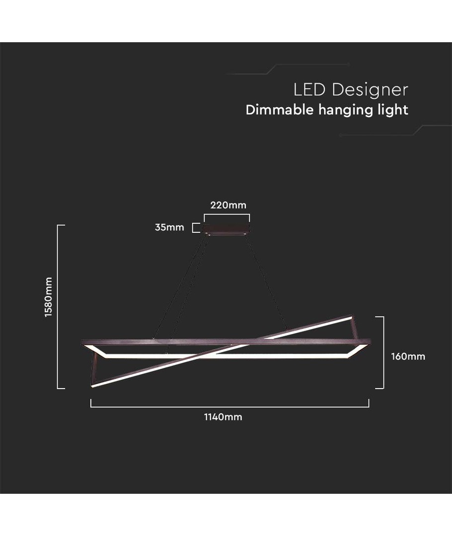 Lampans moderna design är accentuerad av dess svarta färg, vilket gör den till ett stilrent tillskott i alla inredningar. Dess dimensioner (1580 x 160 x 1140 mm) säkerställer att den gör ett intryck utan att överväldiga rummet.
