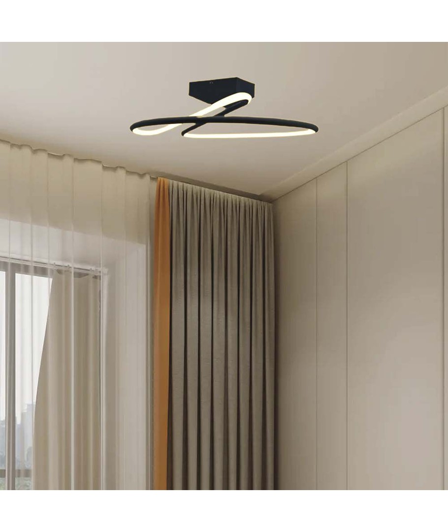 Denna designerlampa kombinerar stil och funktionalitet med sin rundade form och stilrena, svarta finish. Dess moderna design gör den till ett perfekt val för både hem och kontor, där den smälter in sömlöst i olika inredningsstilar.